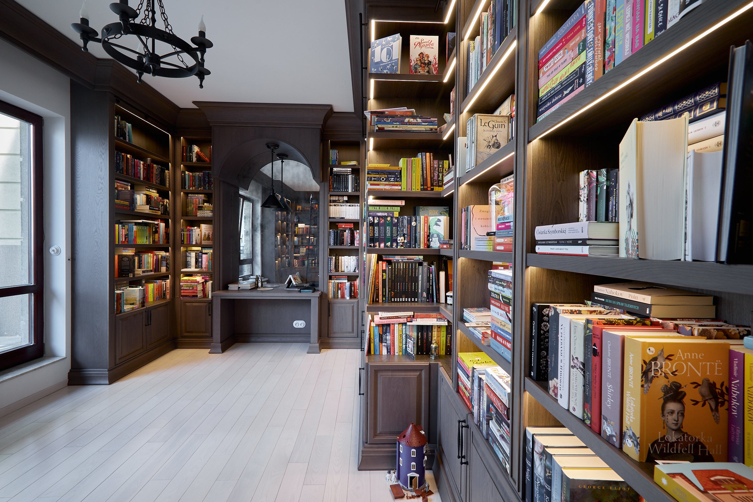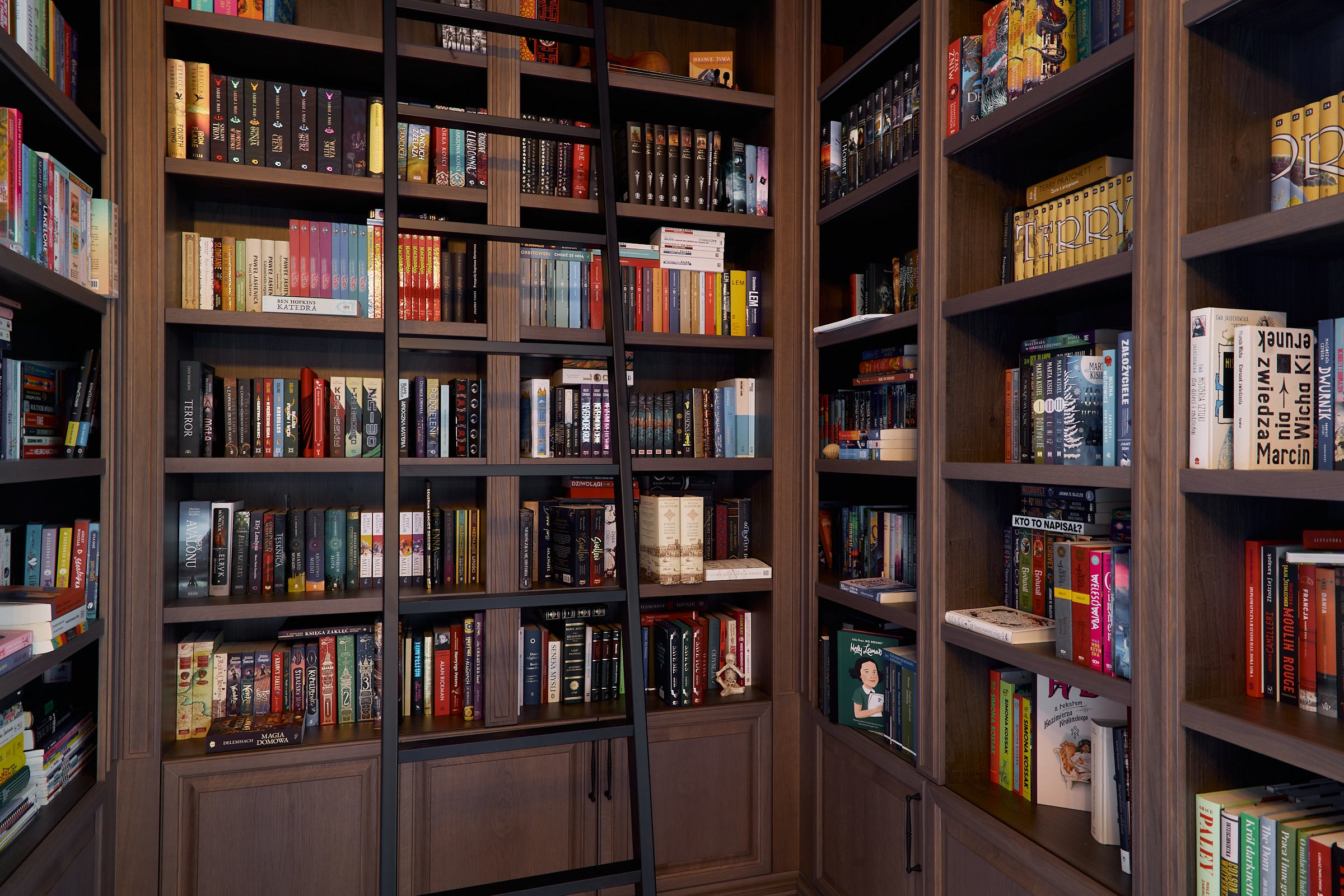 Jednym z największych wyzwań było stworzenie subtelnego i efektownego oświetlenia półek. Chcieliśmy, aby światło równomiernie oświetlało wszystkie książki, jednocześnie nie zaburzało eleganckiego charakteru wnętrza. Dlatego też zdecydowaliśmy się na ukrycie taśm LED za specjalnymi listwami. To rozwiązanie sprawia, że biblioteka nabiera tajemniczego uroku, gdzie każda strona historii nabiera nowego znaczenia.